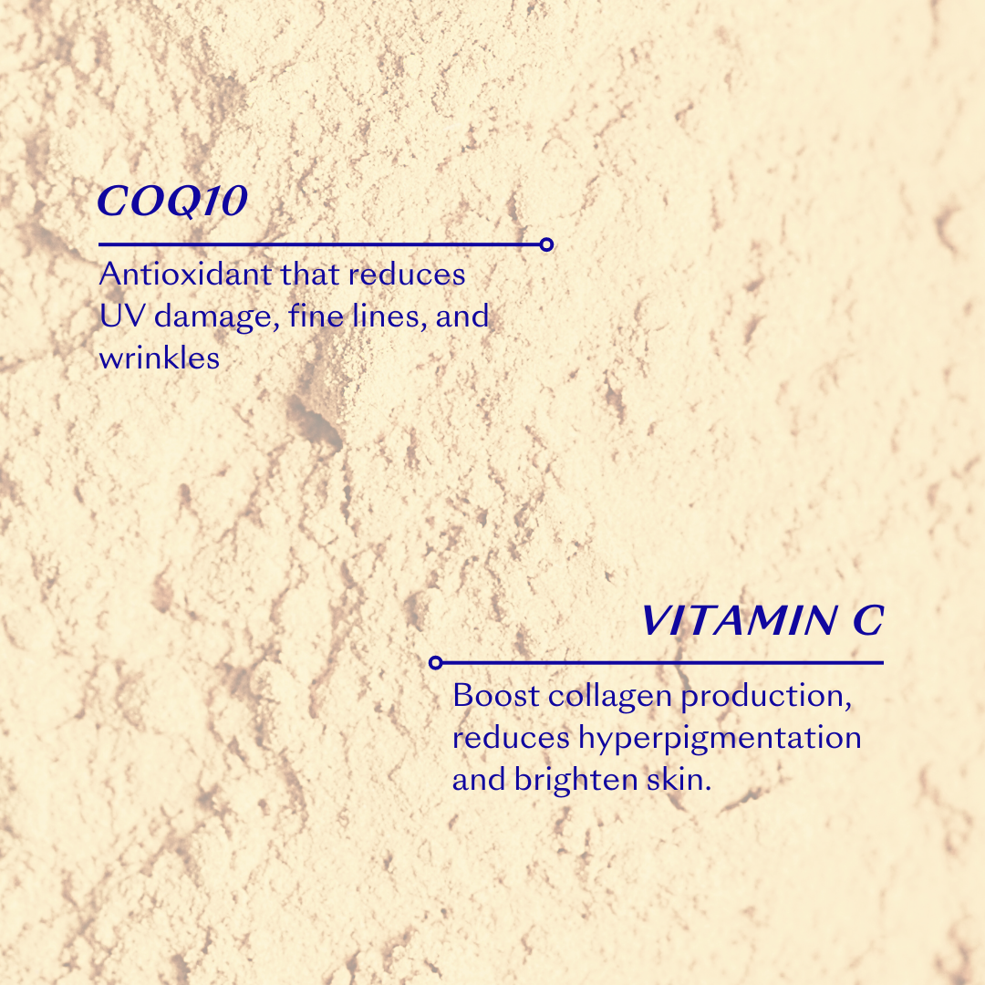 A powerhouse ingredient. CoQ10 is a cellular energiser and antioxidant that can reduce the visible oxidative damage caused by UV rays and even decrease the depth of wrinkles.