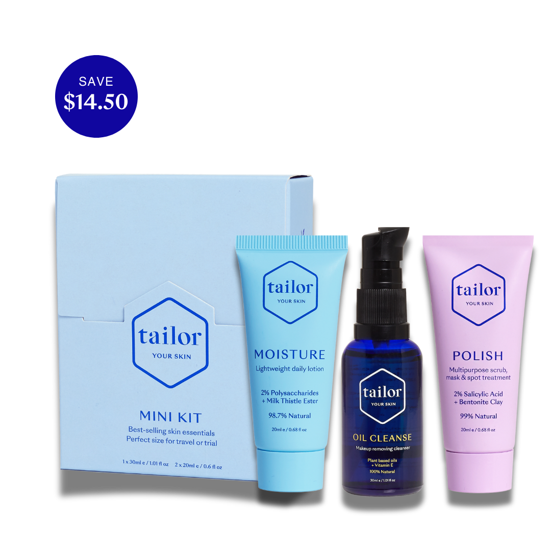 The perfect pack to introduce you to the Tailor range and includes the essentials for your base skincare routine. These mini sizes last 4 weeks. Get results and then commit. The Tailor glow is a real thing!