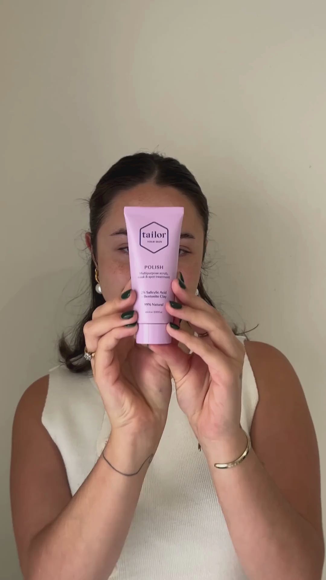 Our super gentle natural exfoliant will gently buff your skin for a smoother and brighter complexion (AKA the Tailor glow).