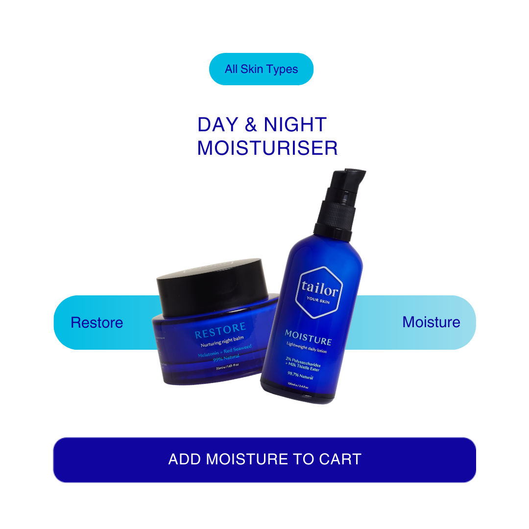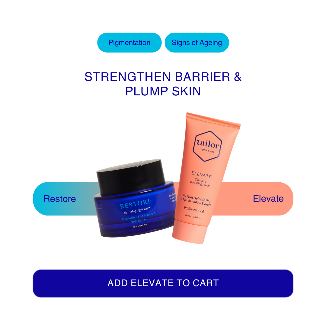 Tailor Restore is more than just a night cream, it’s a powerhouse balm infused with melatonin, New Zealand red seaweed, and shea butter to deeply nourish and support overnight skin recovery. Its rich yet breathable formula helps combat oxidative stress, restore the skin barrier, and promote a well-rested glow by morning.