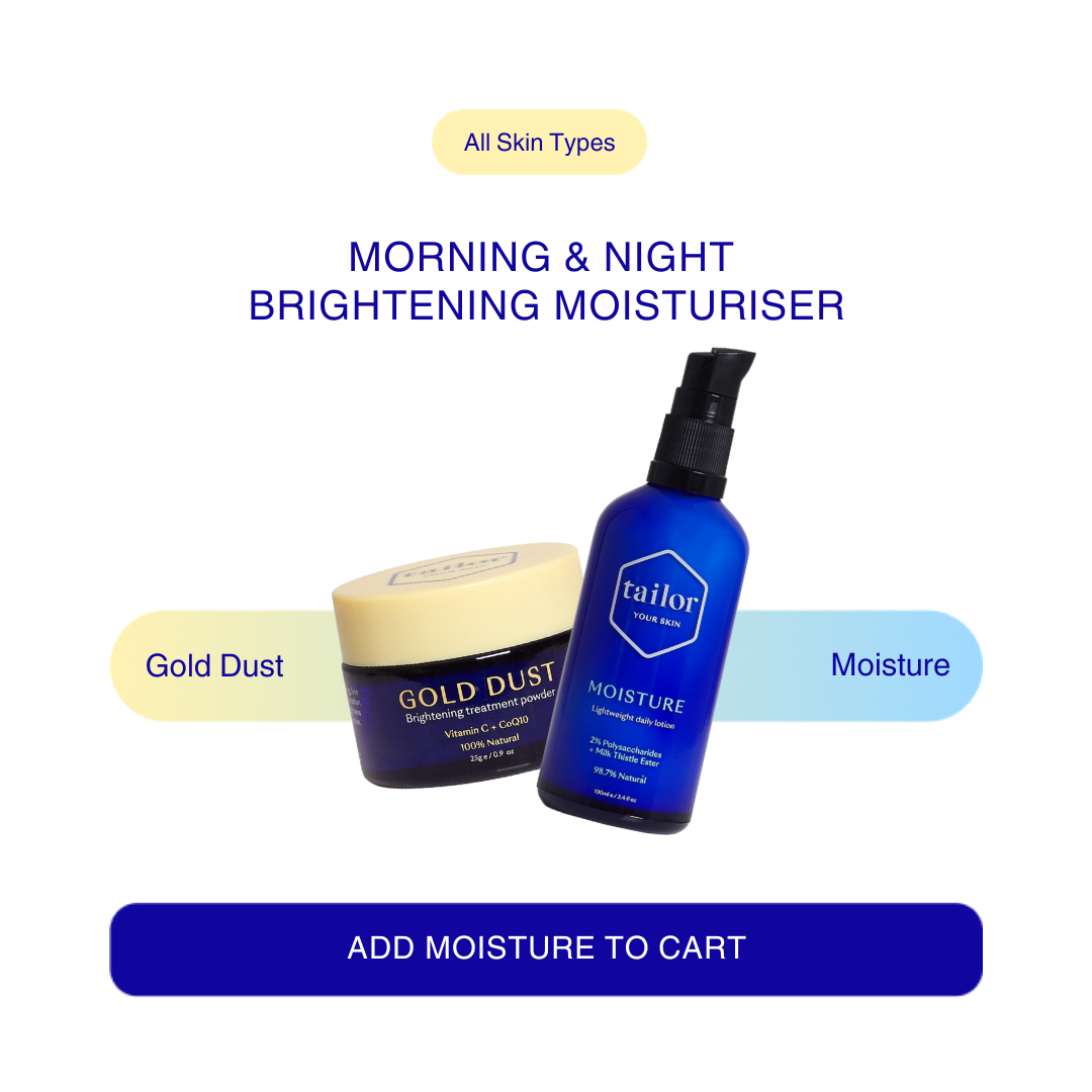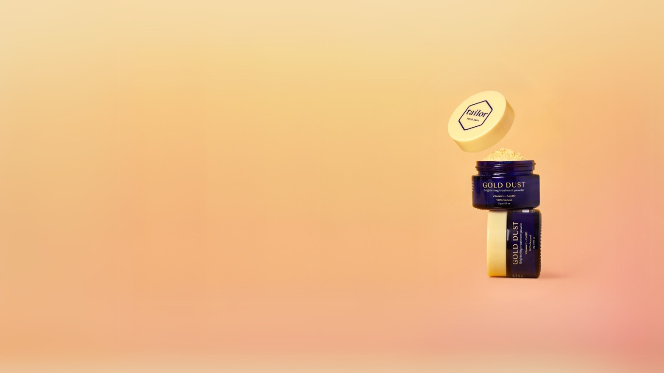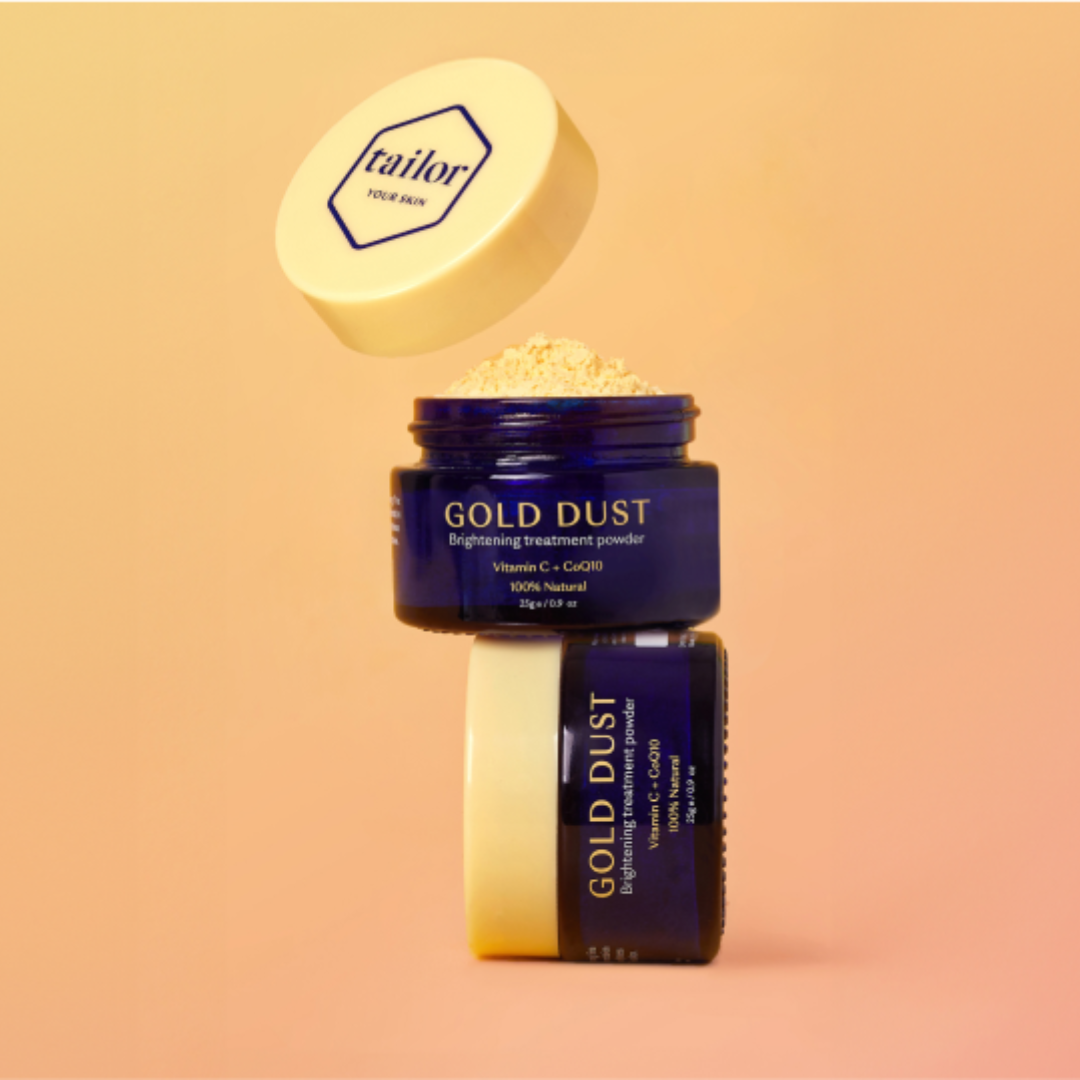 Unlike a vitamin C serum or cream, Gold Dust is a dry powder. In order to activate the vitamin C, it needs to be mixed with a water-based product. Tailor Renew, Moisture or Hydrate can all be used with Gold Dust. You will not get the full effects of Gold Dust by mixing it with an oil or oil-based product, so save the oils for later in your skincare routine.