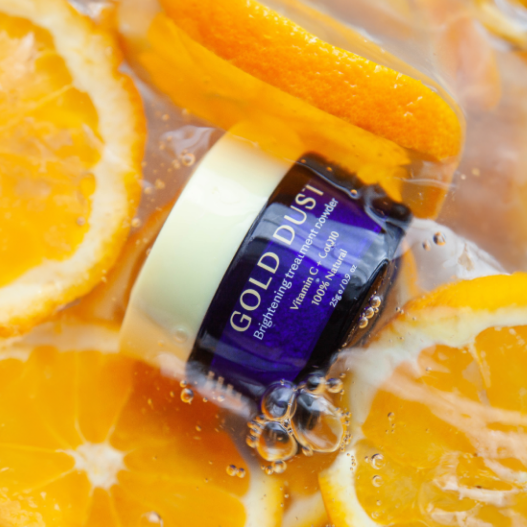 CoQ10 is a cellular energiser and antioxidant that can reduce the visible oxidative damage caused by UV rays and even decrease the depth of wrinkles. It works synergistically with Vitamin C to leave skin looking younger, clearer and brighter. It is naturally golden in colour, giving Gold Dust its name.