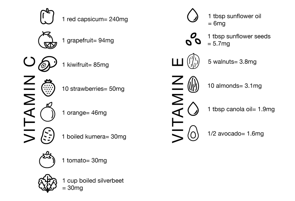 Vitamin C & E rich foods