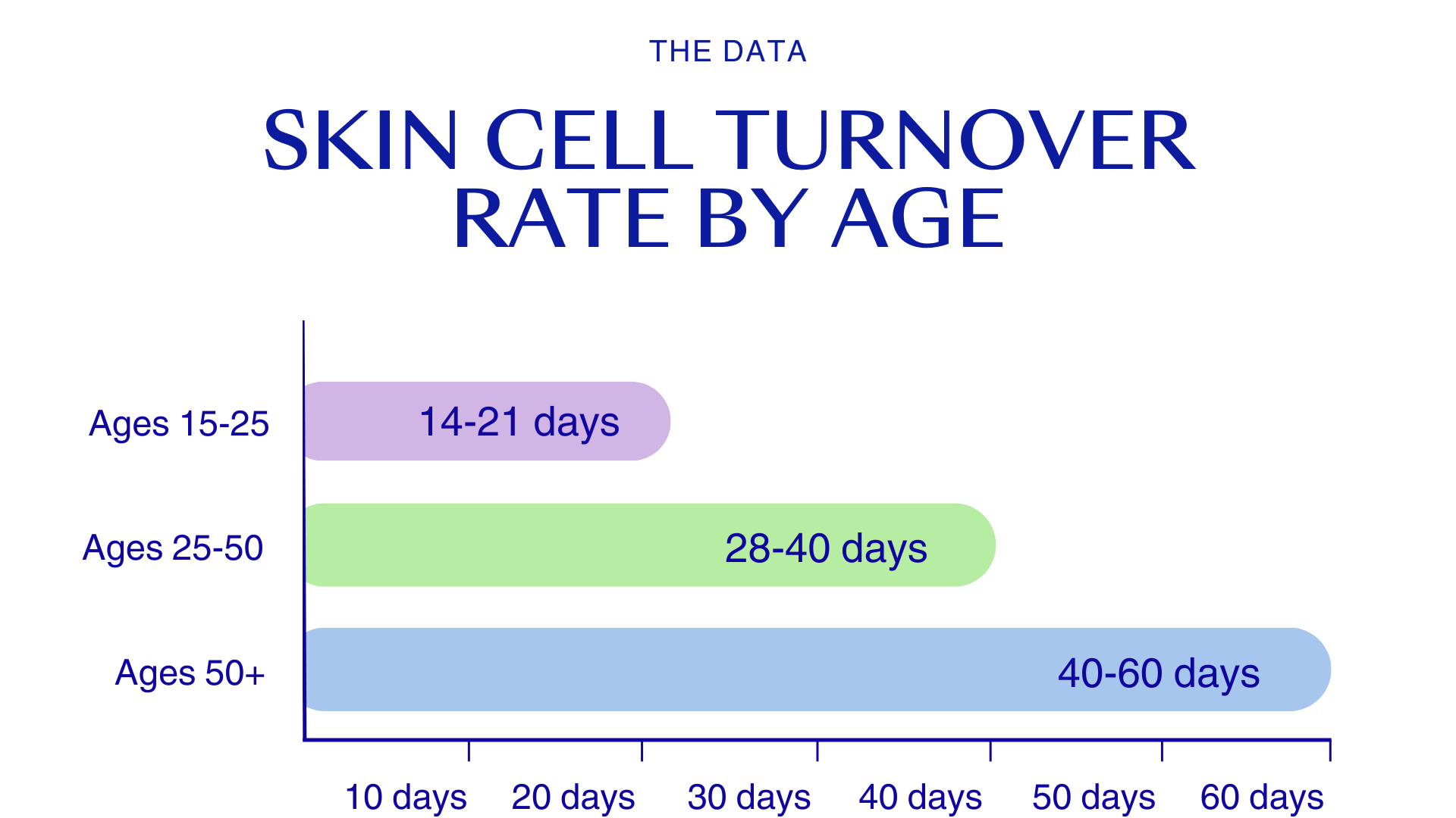 A bit more of a visual learner? We’ve included a handy data-based graph on how our skin cell turnover changes as we age. You can read more about how to get more out of your routine by boosting your skin cell turnover in our blog here.